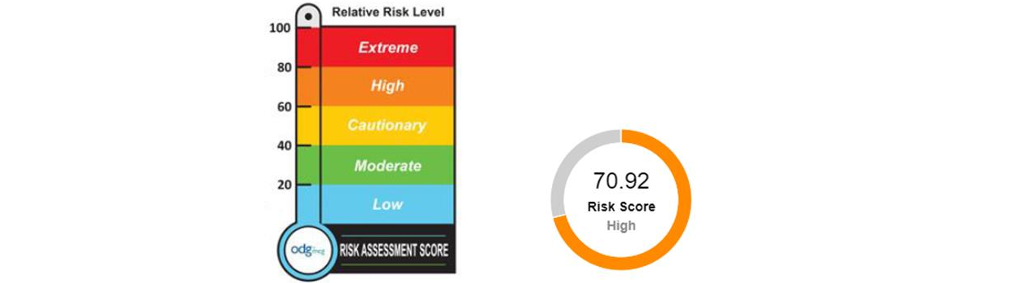 - The ODG system itself displays a round gauge chart and a thermometer chart for its risk score ranges, if you need an additional visual by going to the ODG site.